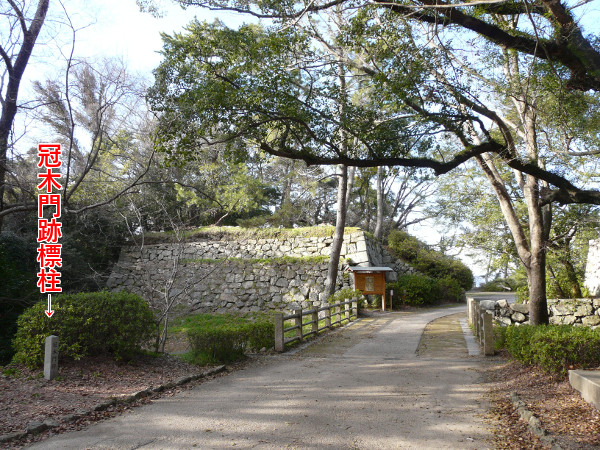 豊橋公園本丸広場の南口門の土橋の手前にある冠木門(かぶきもん)跡