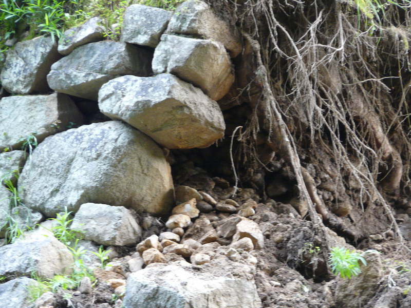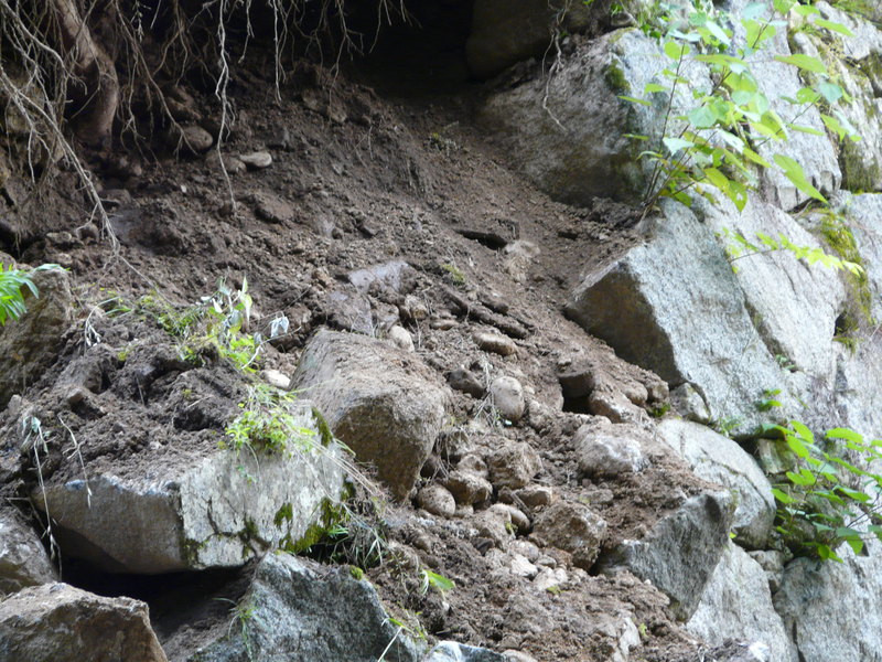 崩れた上部は木の根がかなりあり、土も黒いから土が緩んでいたのかもしれない。
