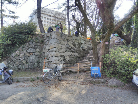 草木を除き、石垣すっきり 豊橋・吉田城址(2020/5/29)