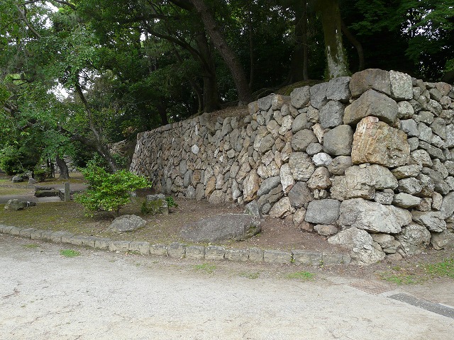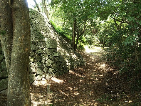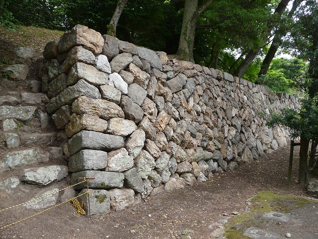印象は本丸裏門の南側より保存状態がよく天端石もほぼ残っているし、雁木の脇は綺麗に積まれている。石の積み方は本丸裏門の南側と同じような落し積み(谷積み)