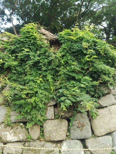 ツタを取り除かれた石垣はクリーニングされたかのような石の状態。それだけツタで保護されていた証かもしれない。