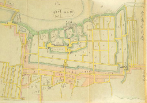 (私見)江戸時代後期に書かれた鳥瞰図風で着色された絵図