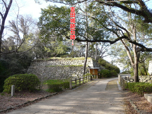 千貫櫓跡である石垣(千貫櫓台)の上には人の背丈ほどもある「吉田城趾」と刻まれた石碑があります